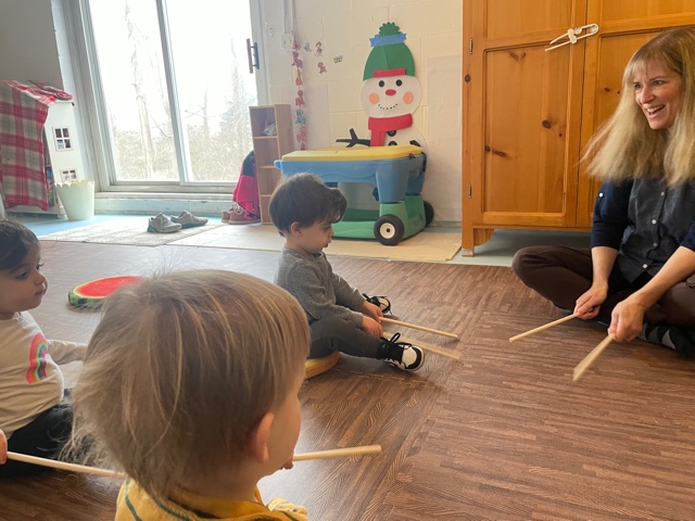 Mommy and Me music classes are very interactive. The children use a variety of instruments and most of the songs they sing are nursery rhymes such as Twinkle Twinkle Little Star. They also follow the Learning Without Tears program when they use their rhythm sticks or bells. I also use the flannel board and sing songs and activities that incorporate school readiness skills. Various movement activities using a parachute are integrated to encourage active learning.